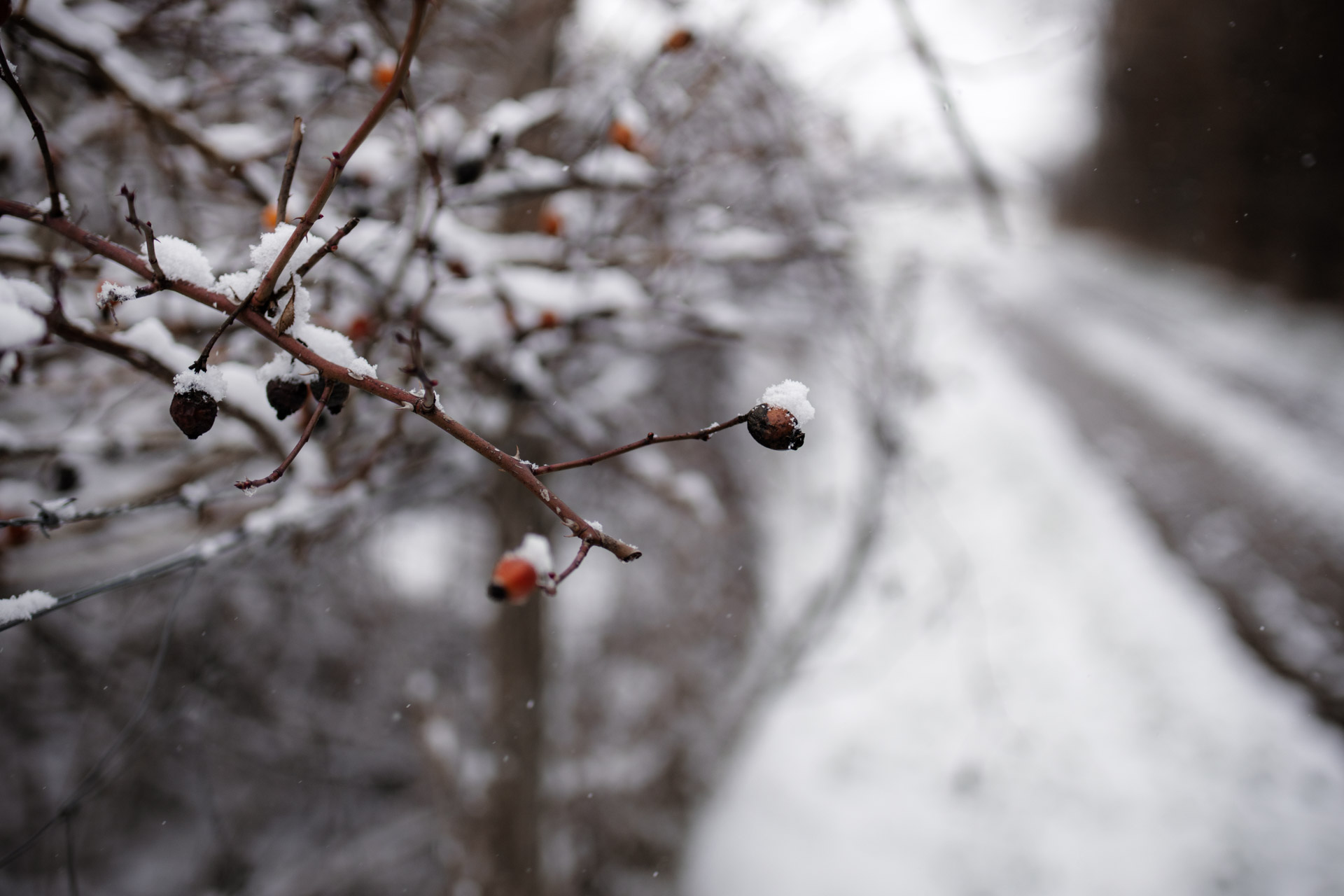 Bei meinem Fotospaziergang kam ordentlich Schnee herunter und so konnte ich gleich noch testen, ob der Spritzwasserschutz denn hält was er verspricht.